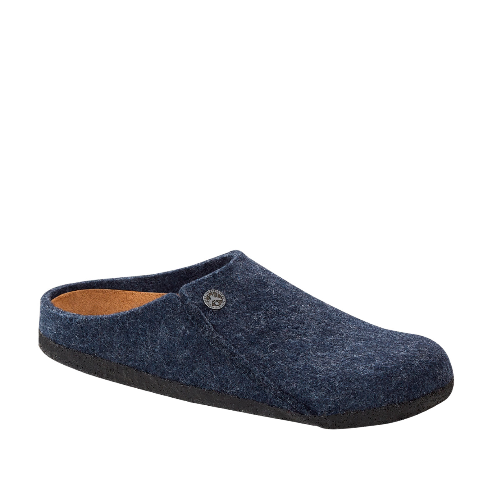 - Pantofola Birkenstock modello Zermat in feltro di lana blu con plantare estraibile.