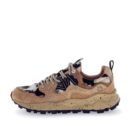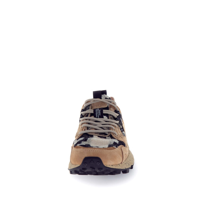Sneakers Yamano lana check bianco, nero e beige e suede beige