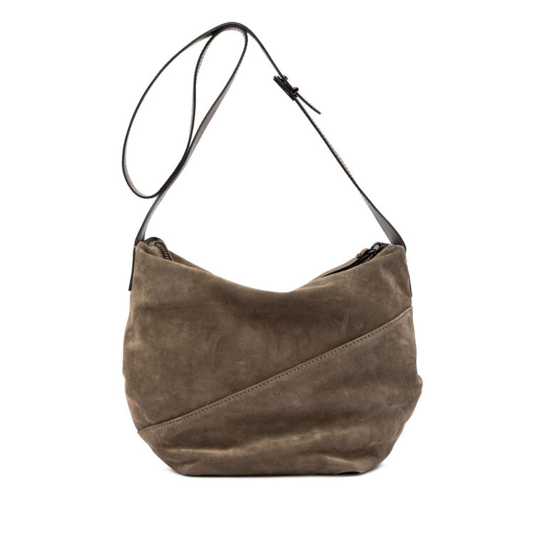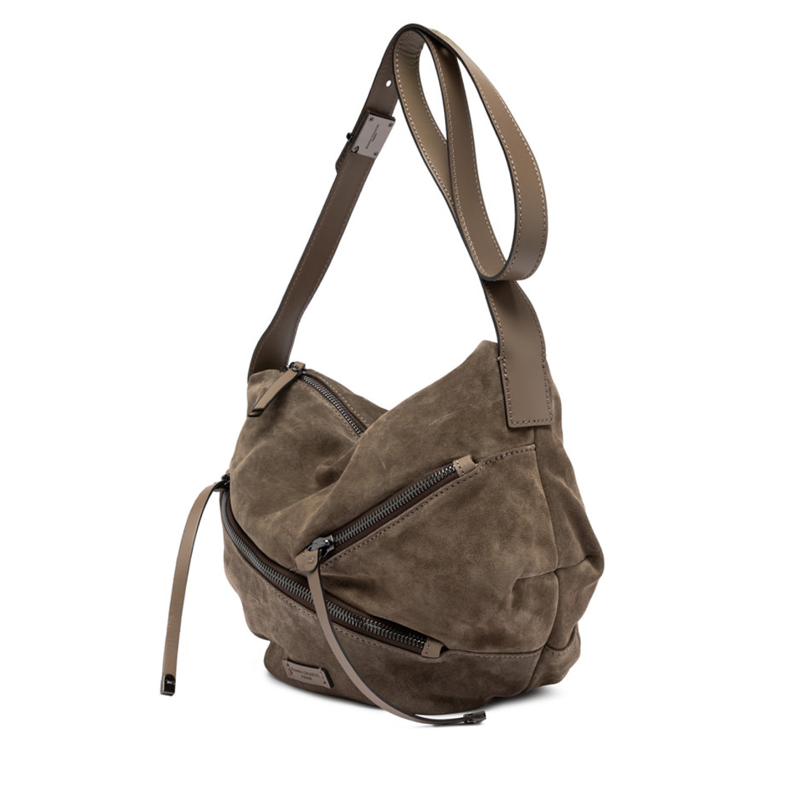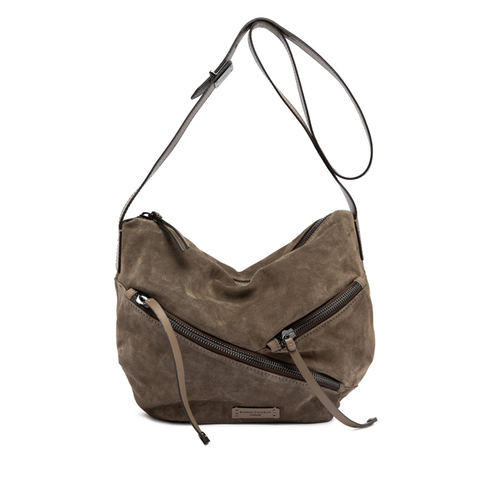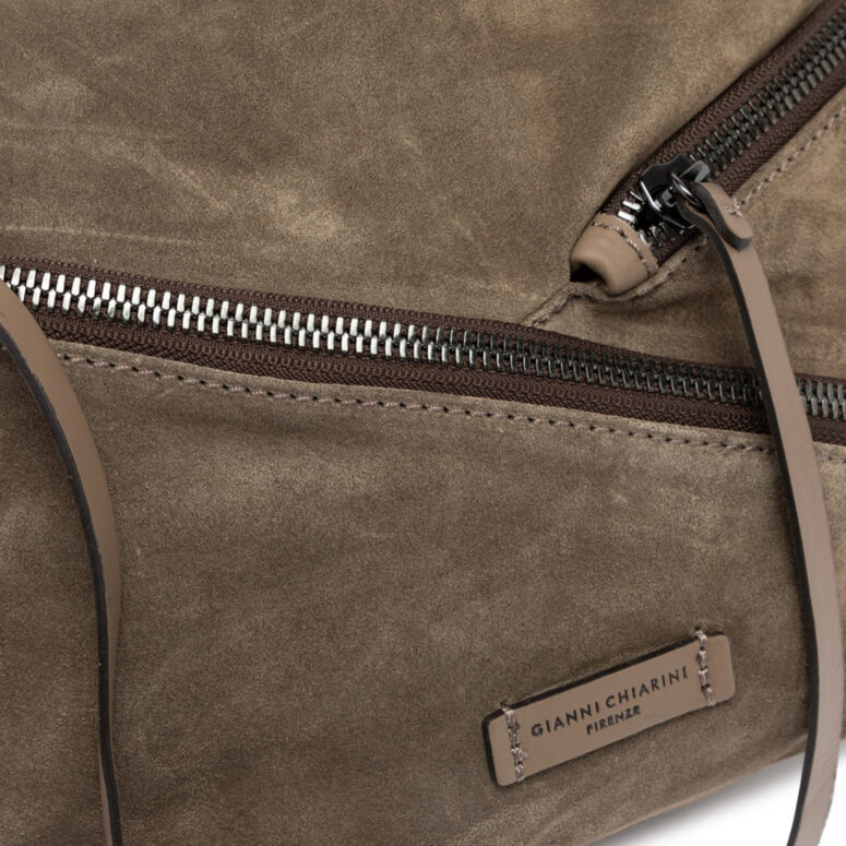 - Borsa Gianni Chiarini modello Shania realizzata in pelle scamosciata color daino/fango.
