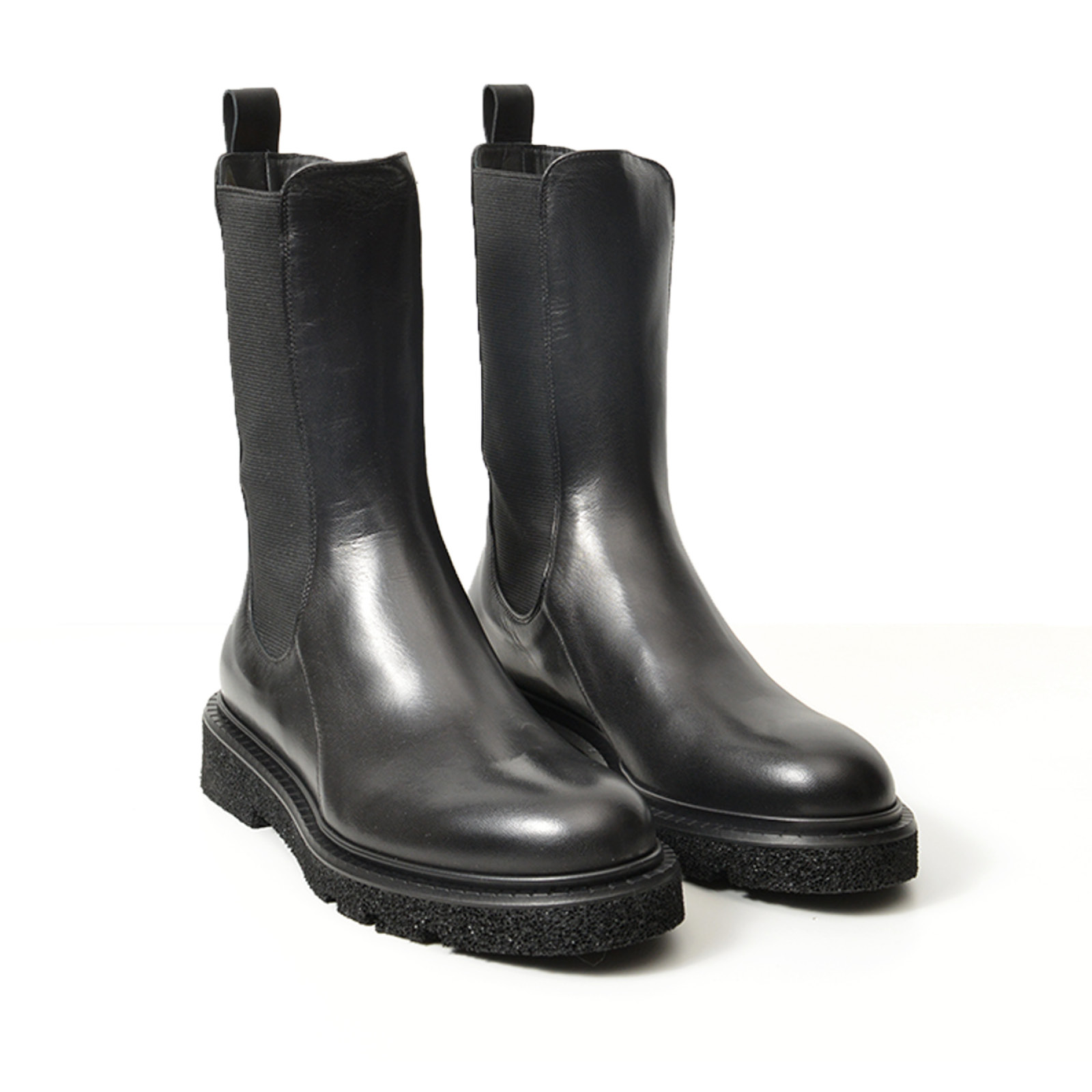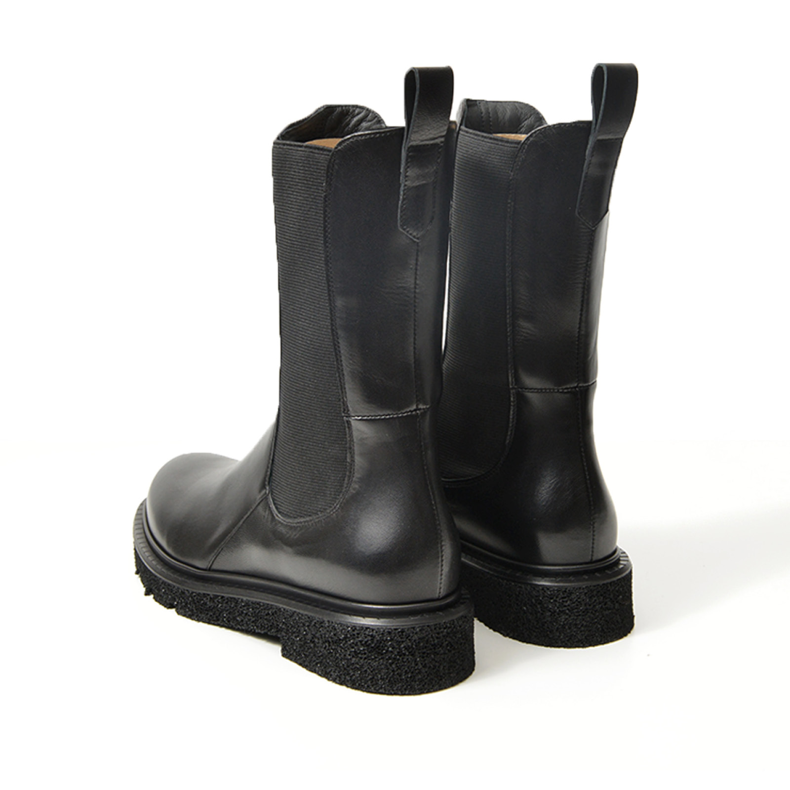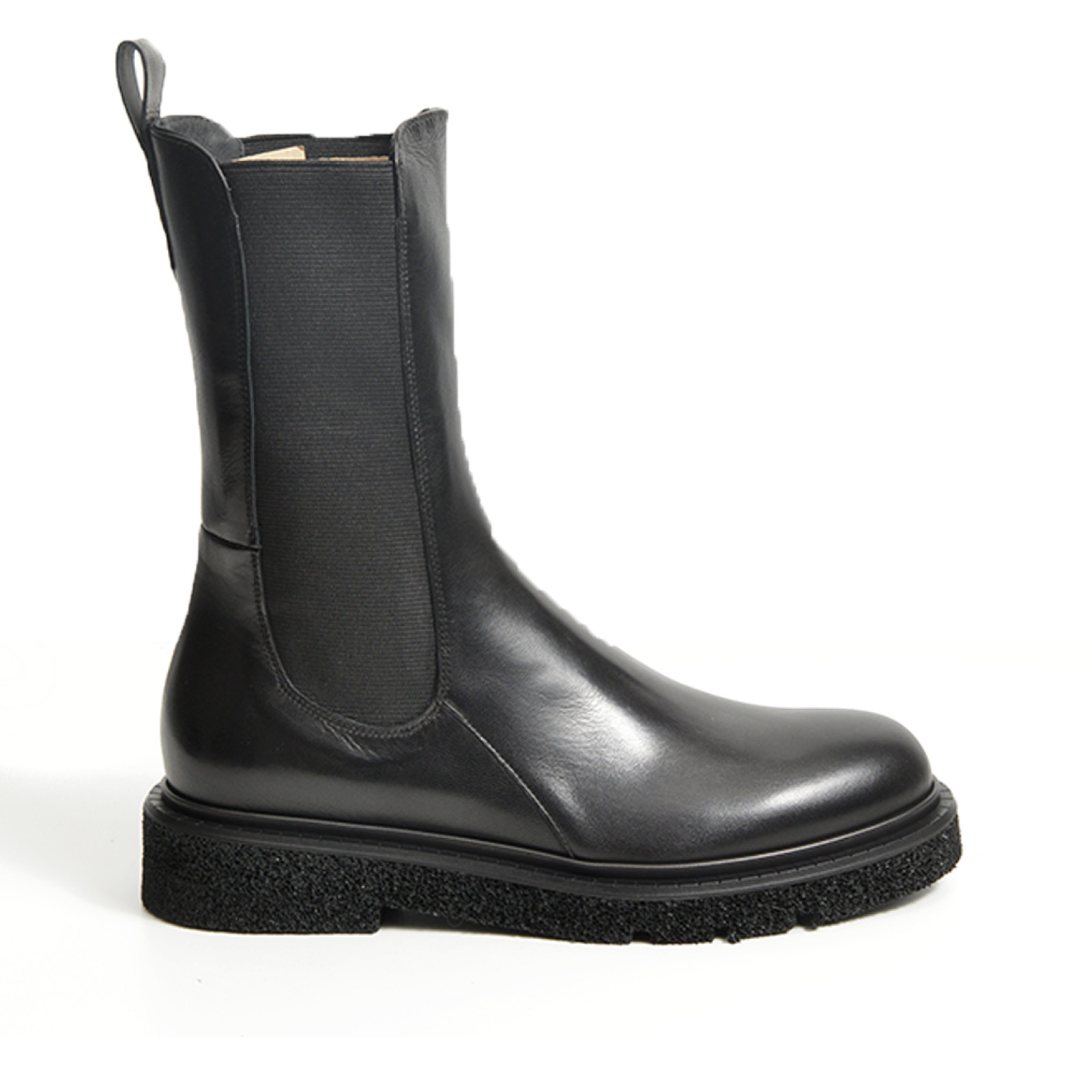 - Stivaletto alto con elastici in morbida nappa nera.