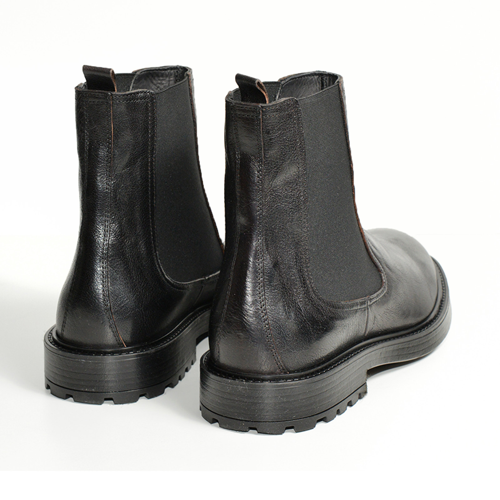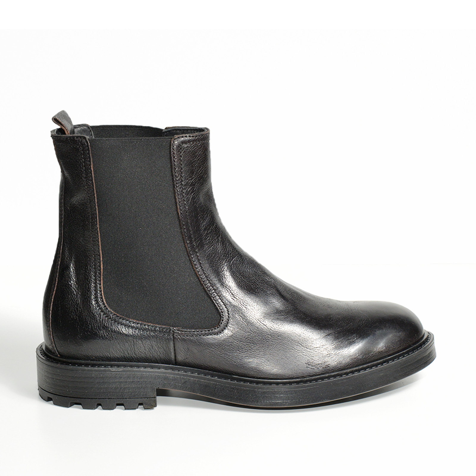 - Stivaletto con elastico naturale in morbida pelle di bufalo nera.
