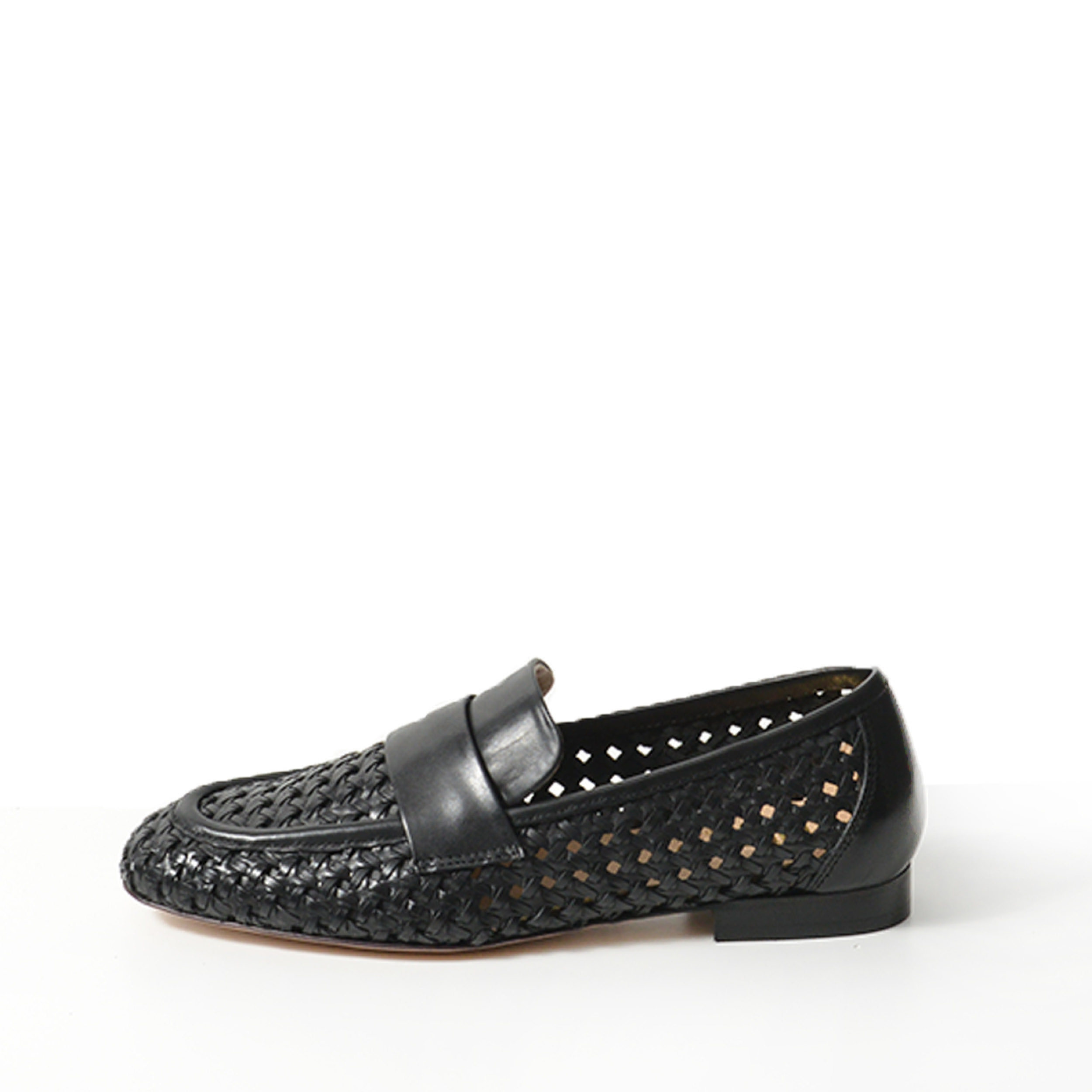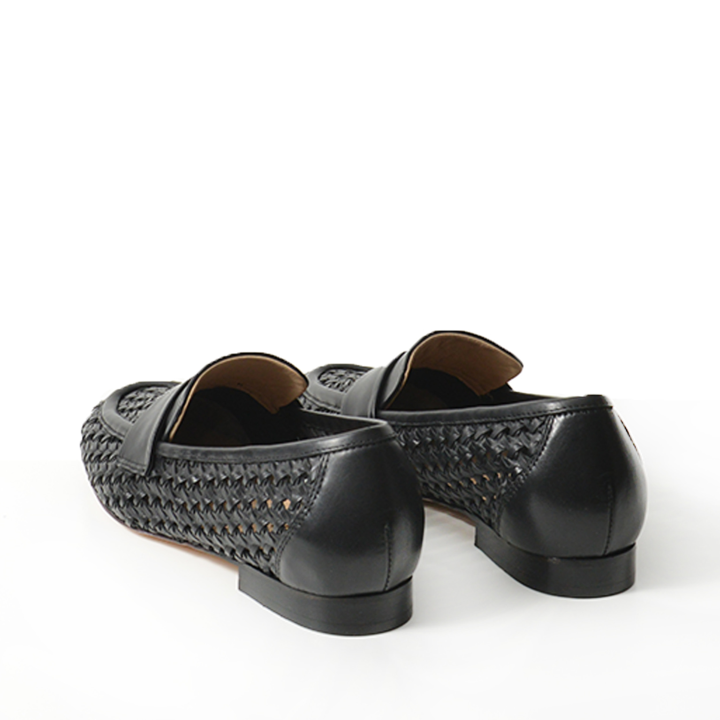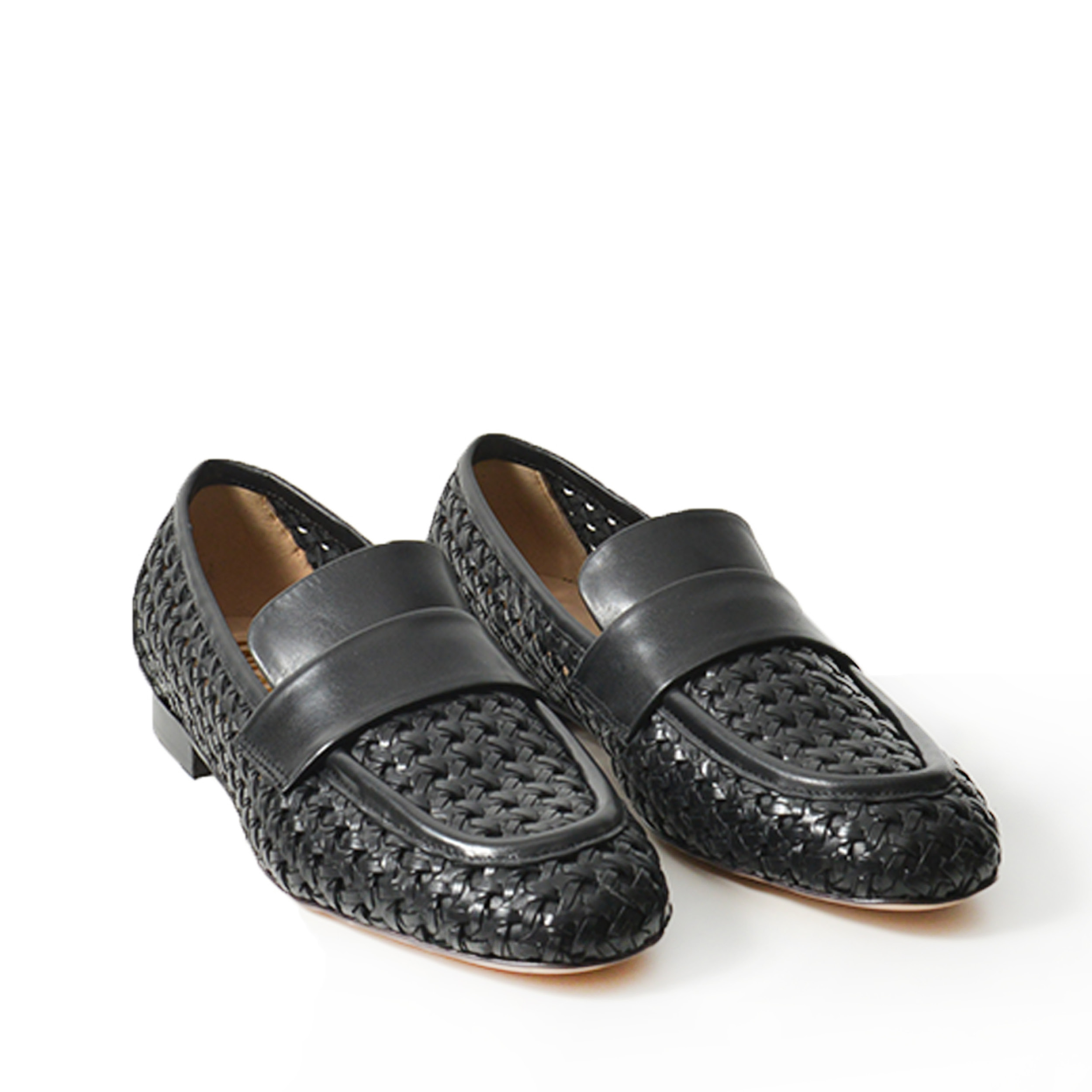 Mocassino in morbida pelle intrecciata nera.