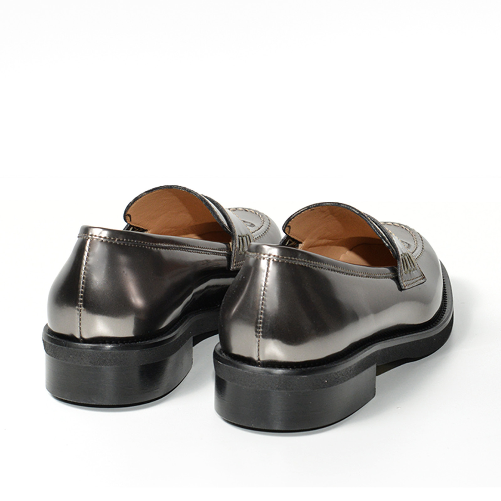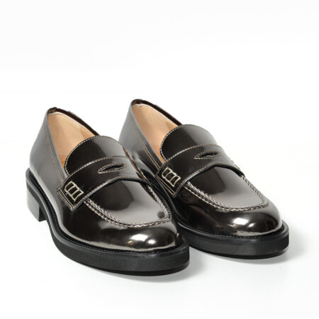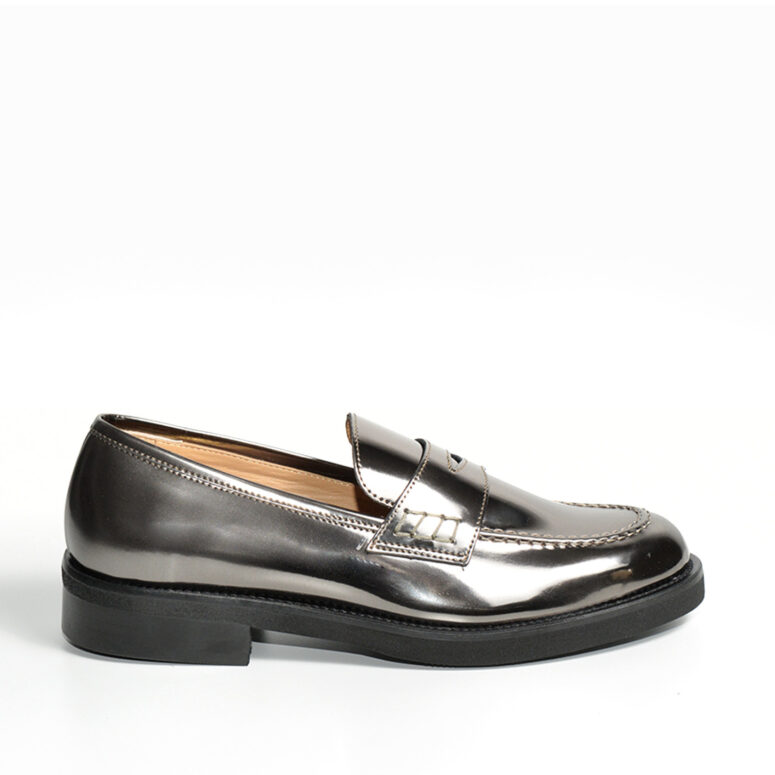- Mocassino in ecopelle a specchio antracite con mascherina.