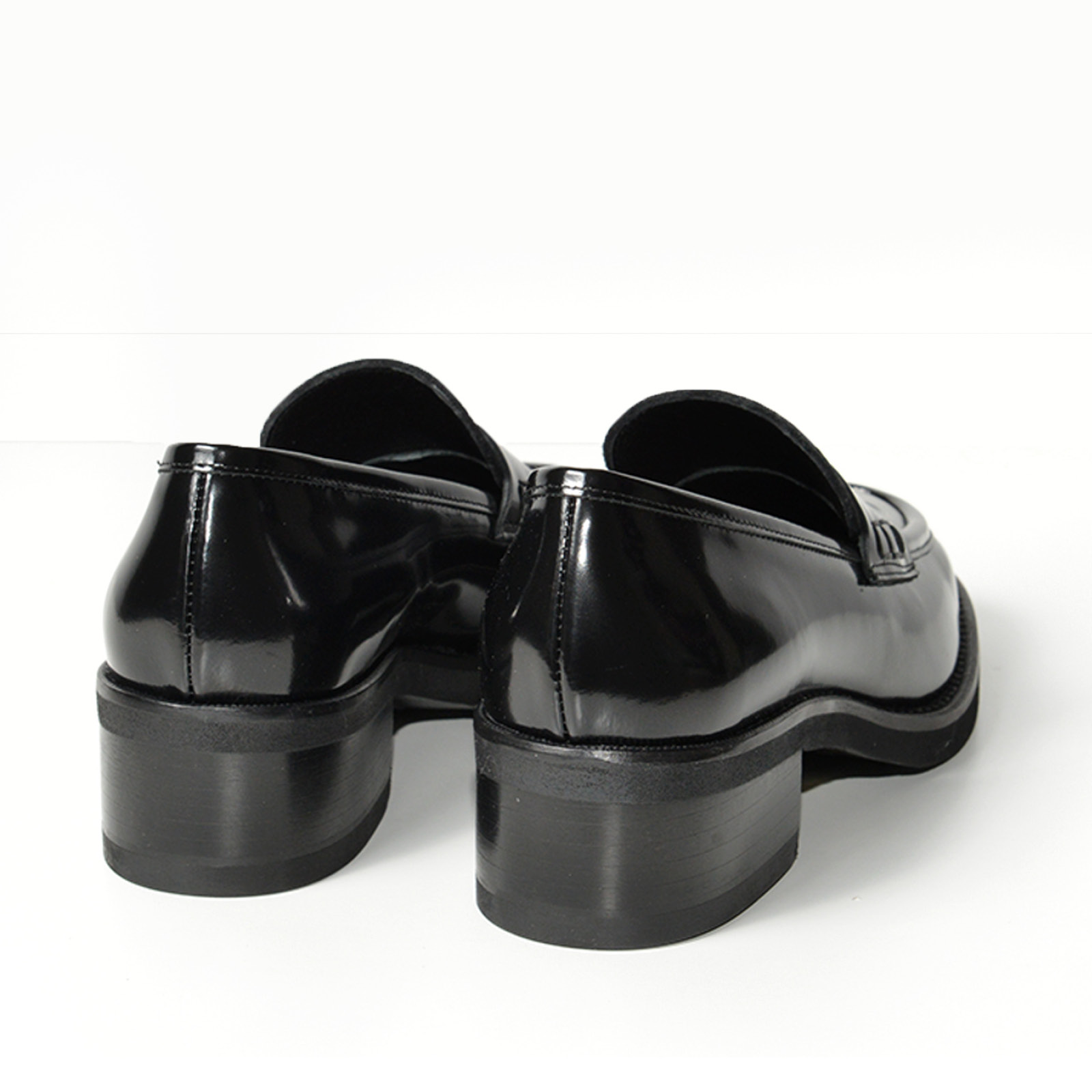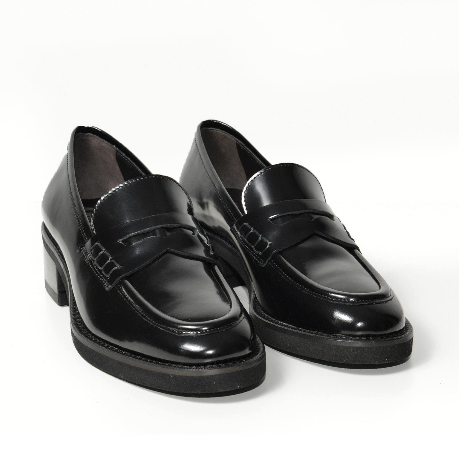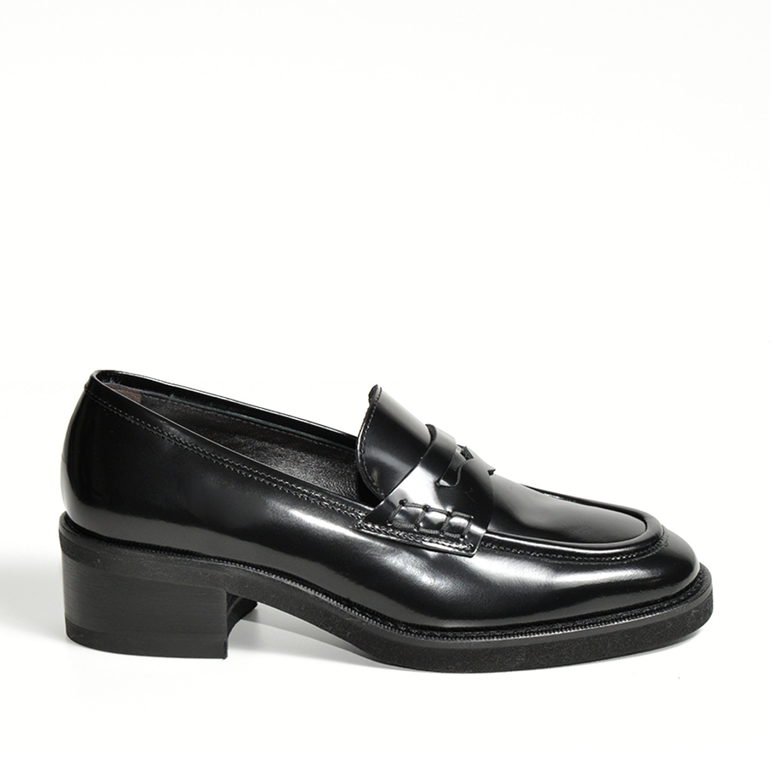 - Mocassino in morbida pelle spazzolata nera con fascetta.