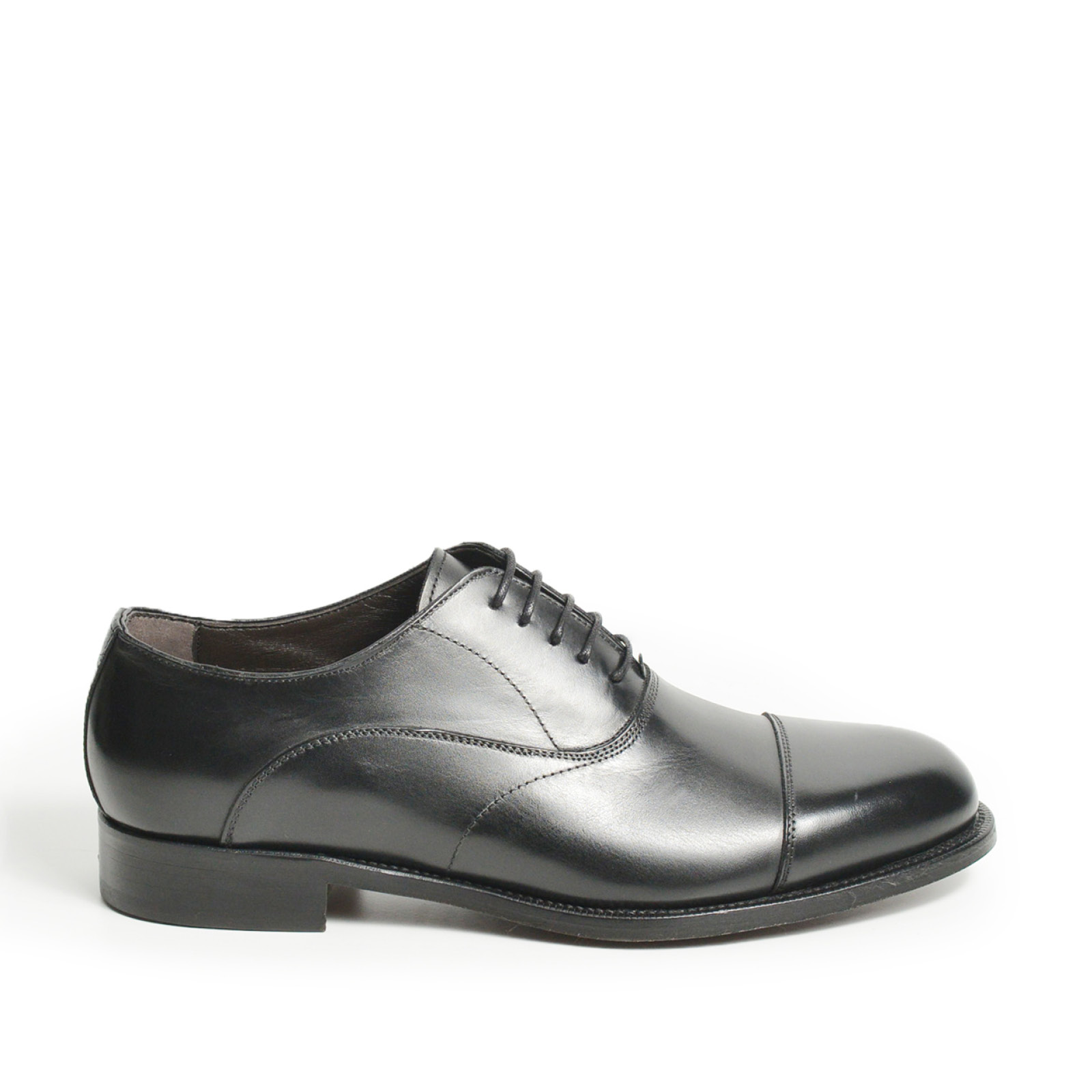- Scarpa legata a francesina realizzata in morbida pelle nera.