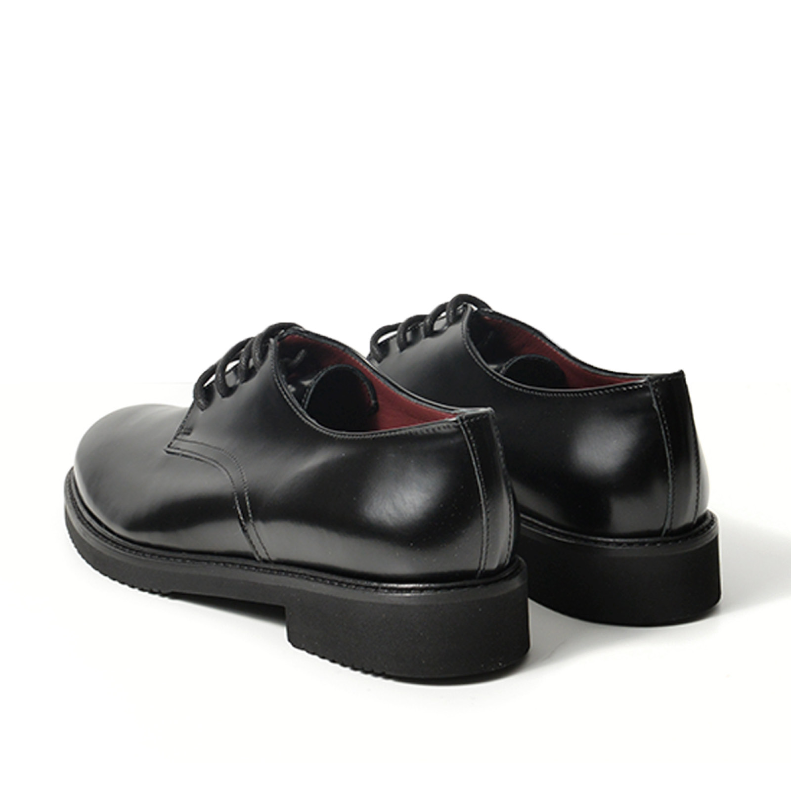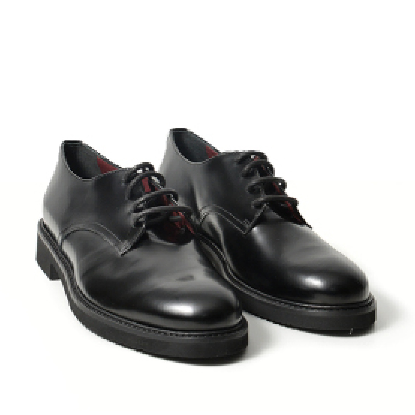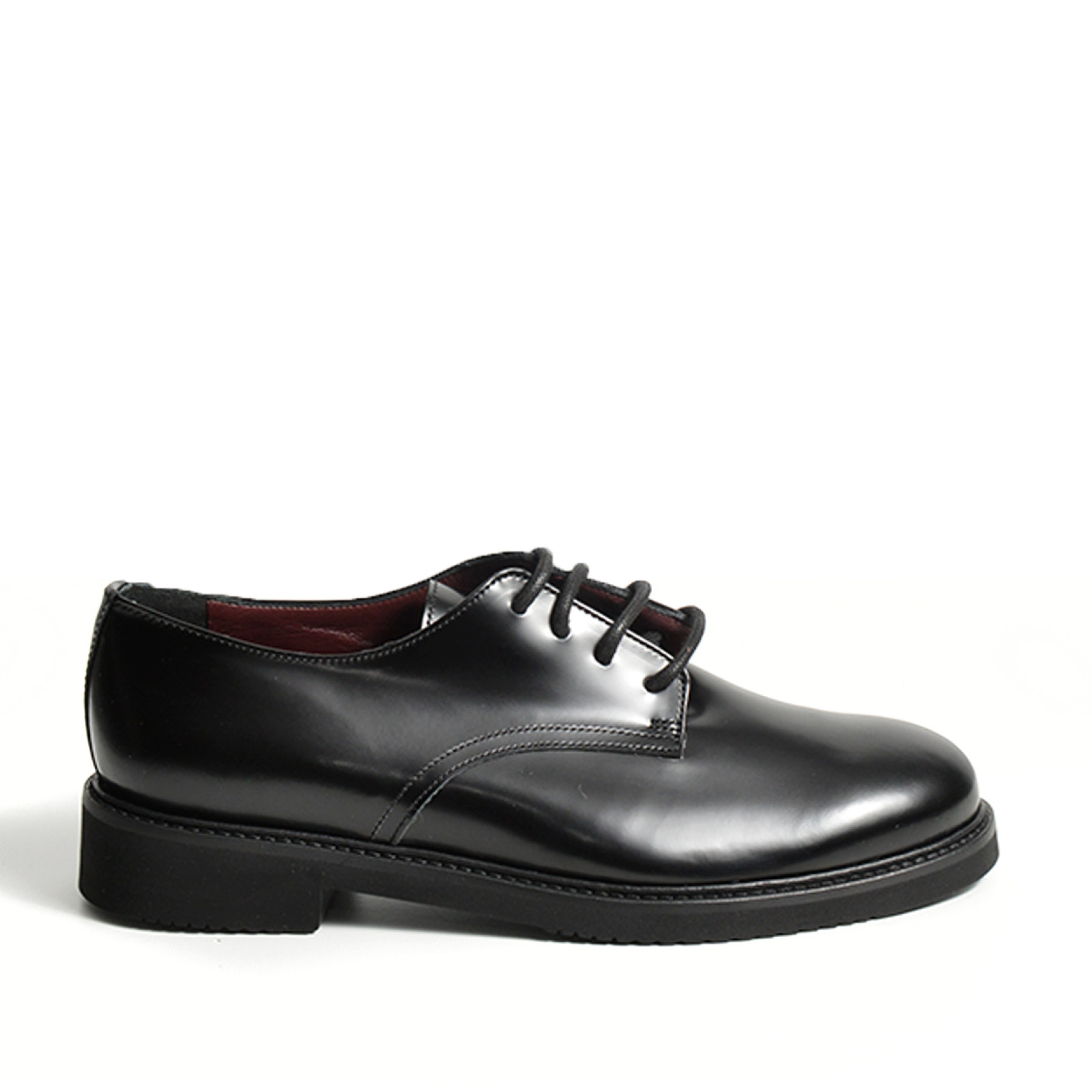 - Scarpa legata a derby in morbida pelle liscia nera.