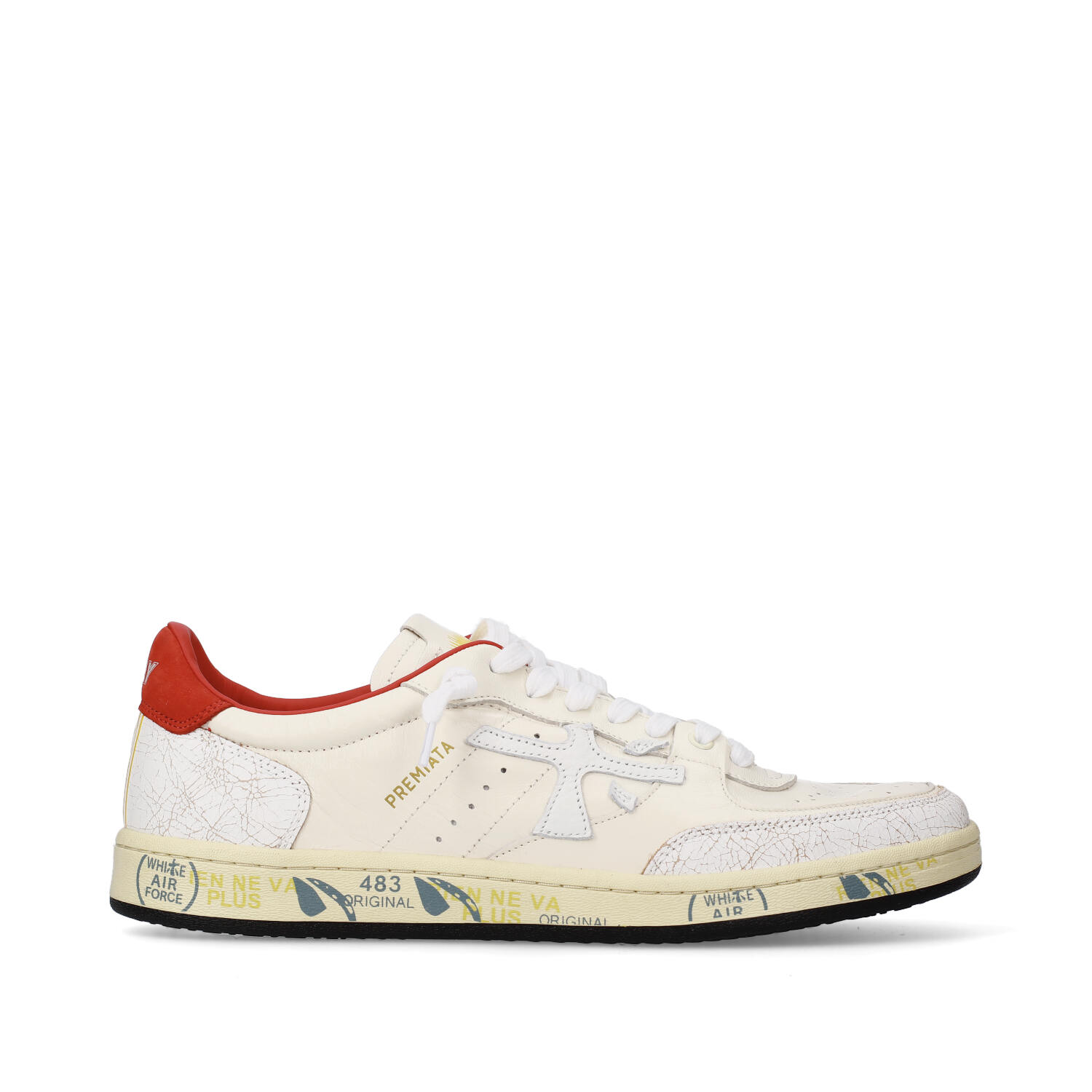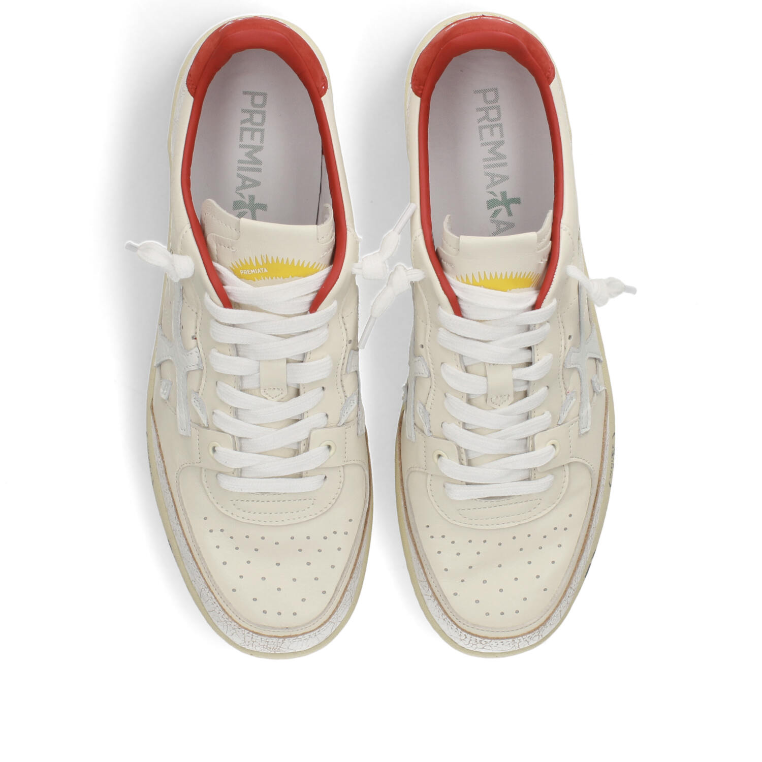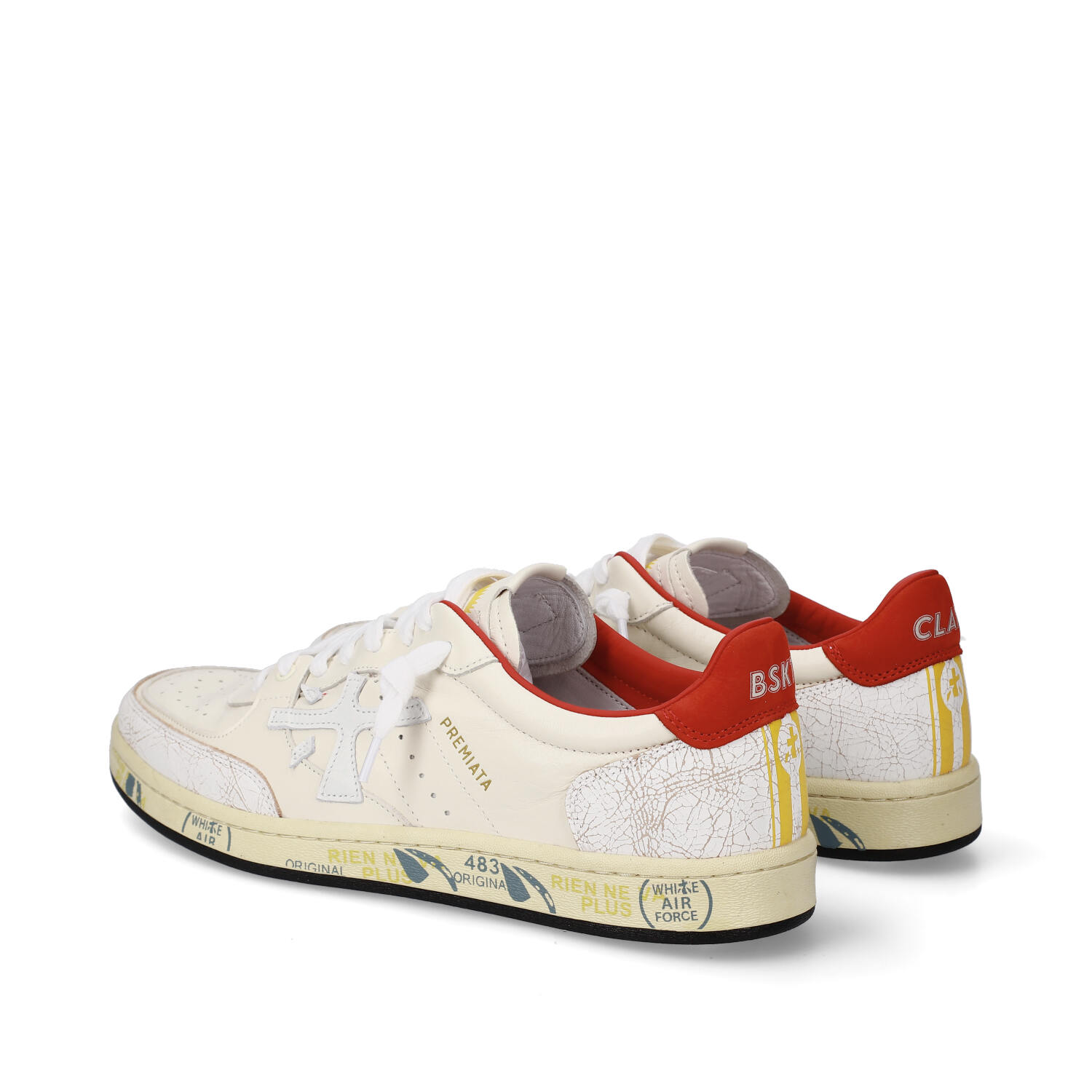 Premiata Basket Clay in pelle burro e sperone in pelle rossa