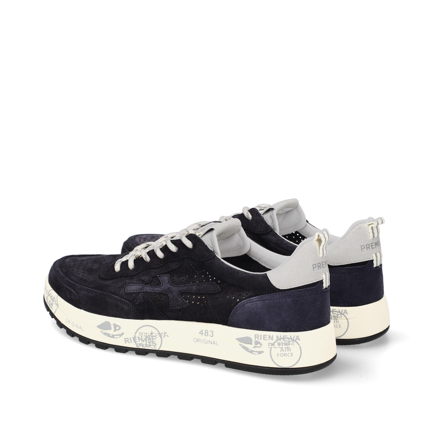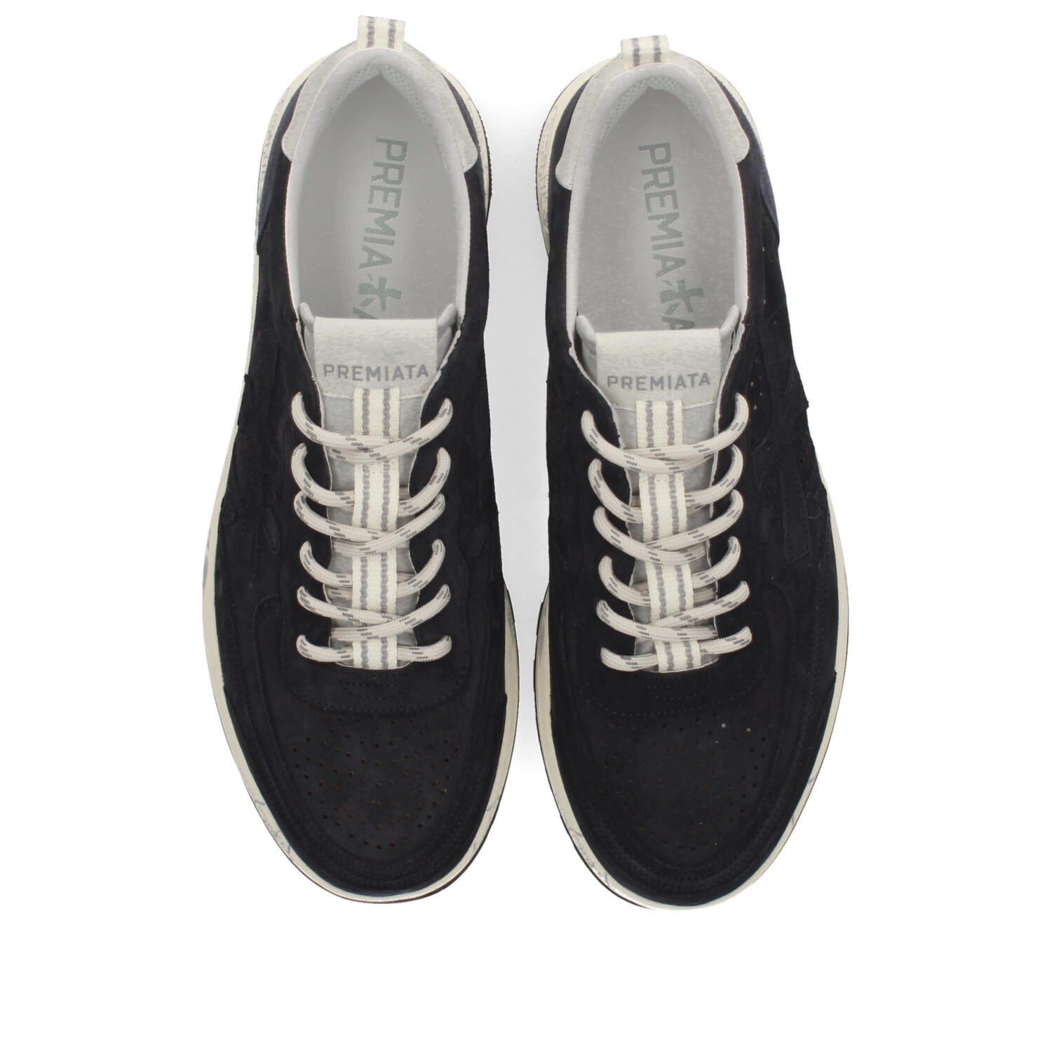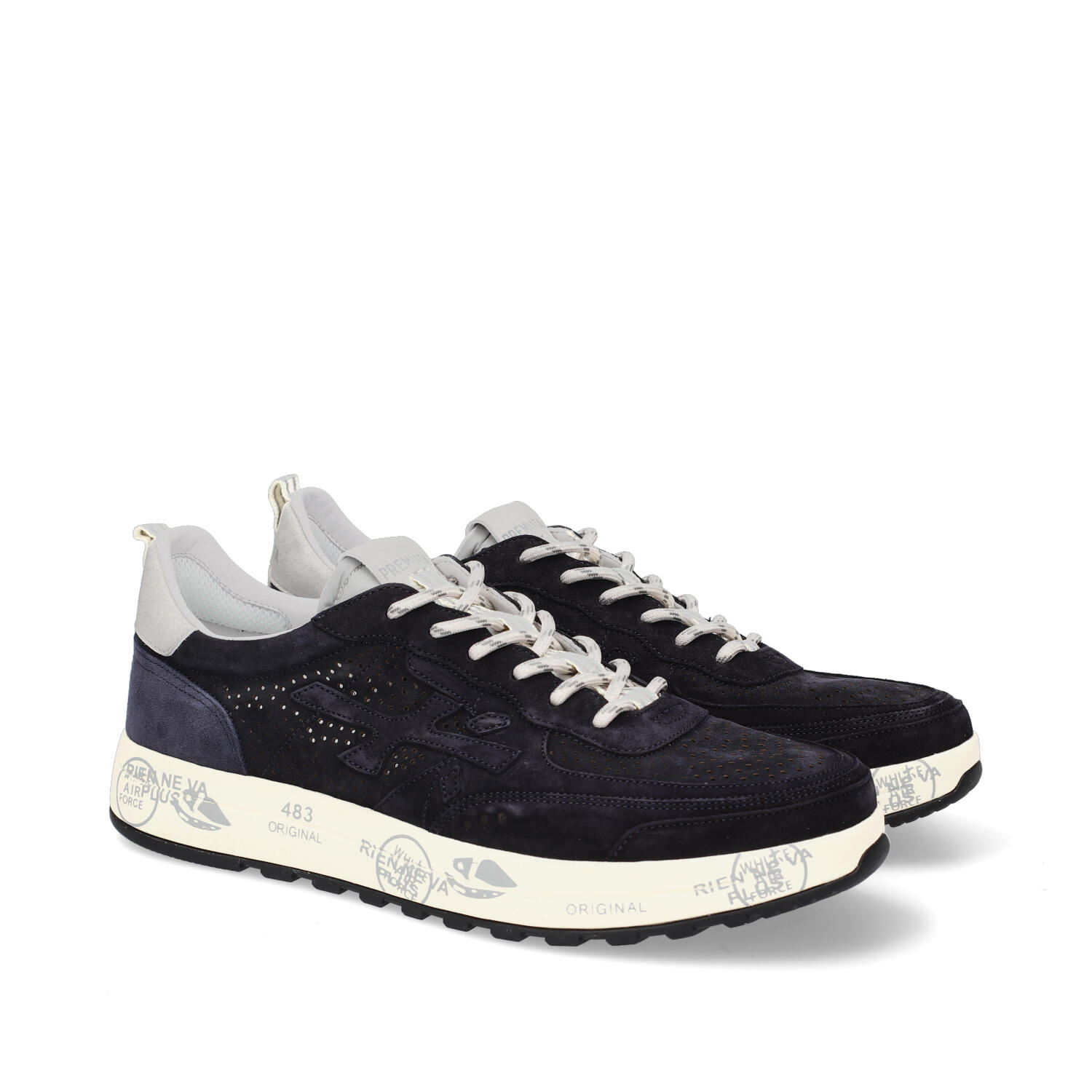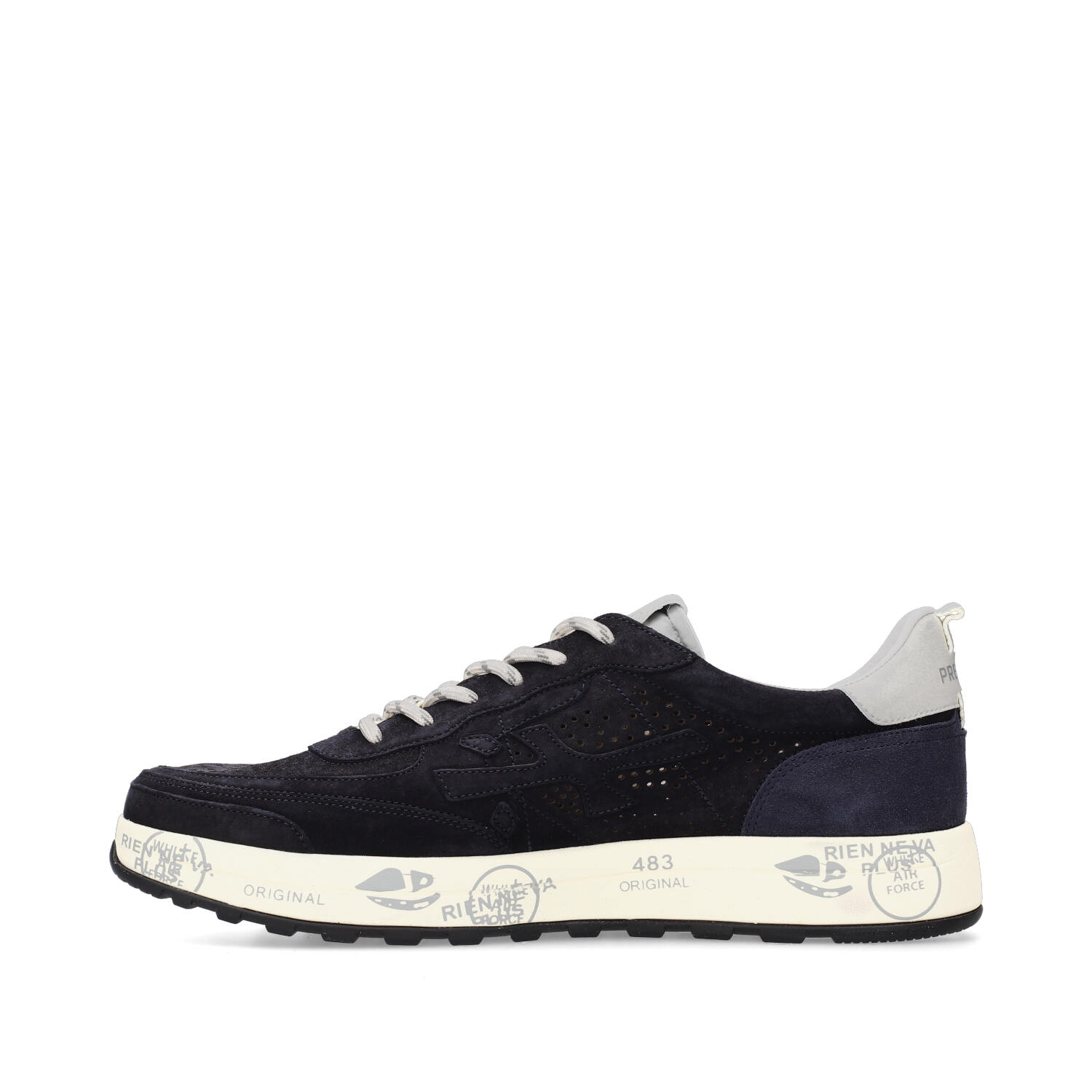 Premiata uomo modello Nous interamente in nabuck blu navy traforato per una traspirabilità senza uguali.