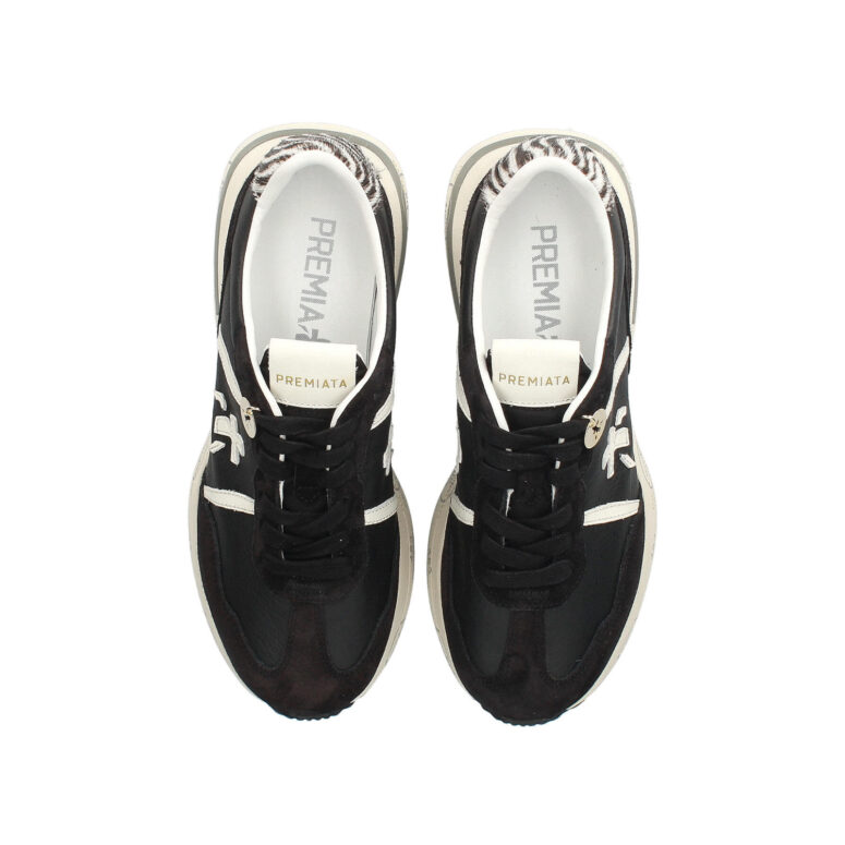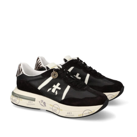- Sneaker Premiata donna modello Cassie in suede e tessuto tecnico nero.