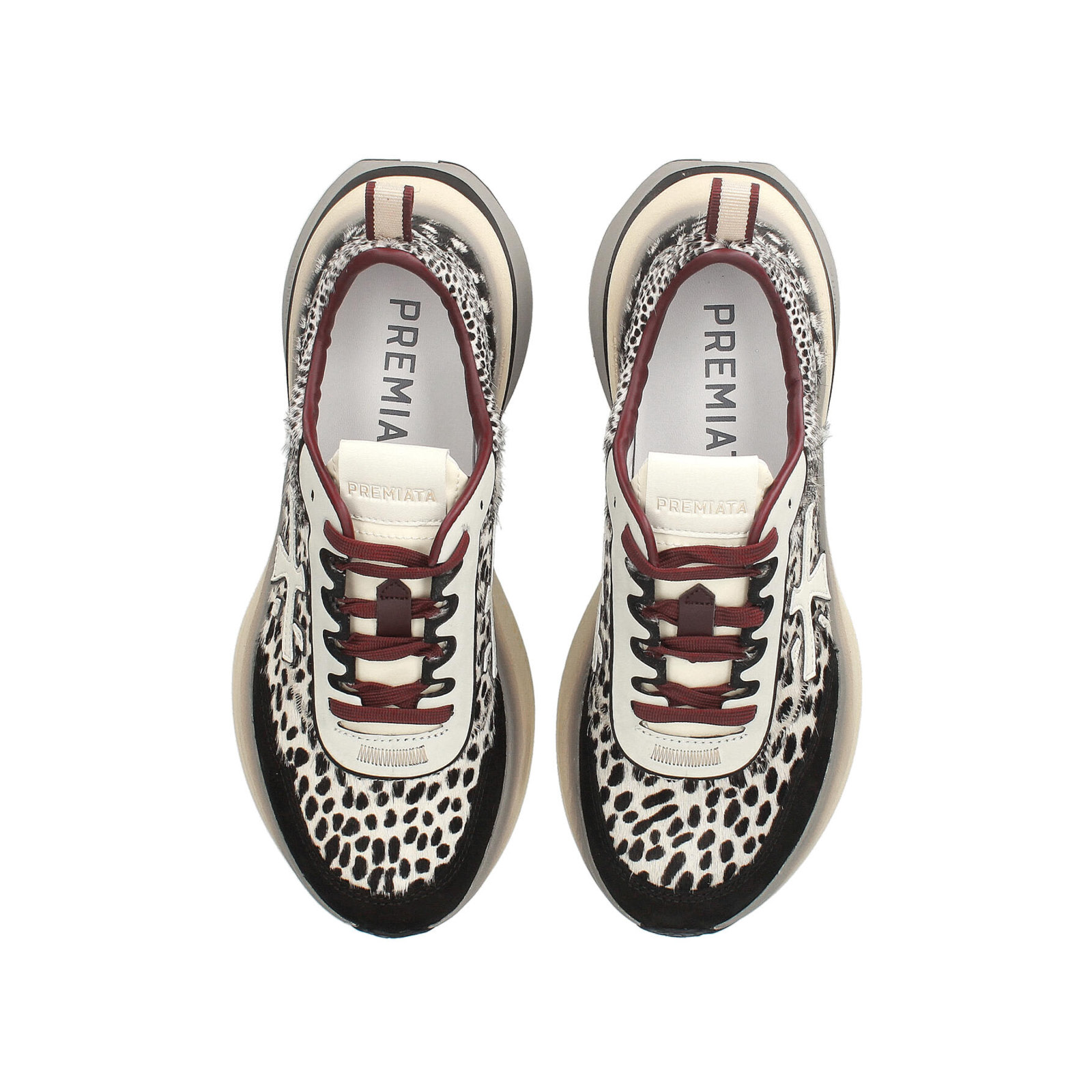 Sneakers Hill in cavallino bianco nero e riporti in suede nero e pelle bianca