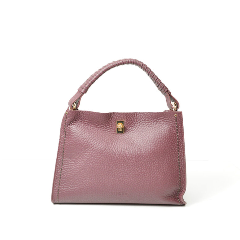 - Borsa Plinio Visonà monospalla in pelle martellata bordeaux con chiusura a gancio.