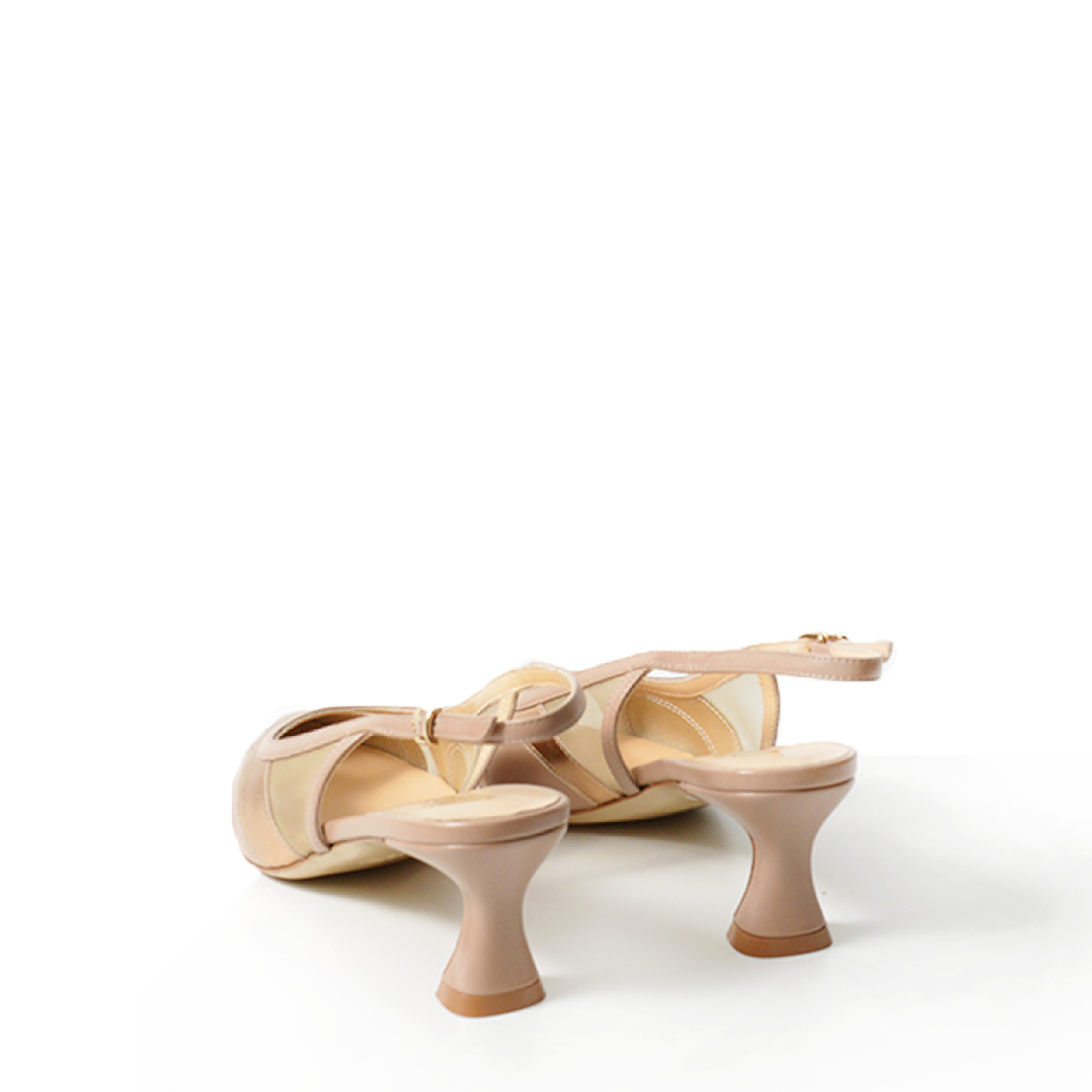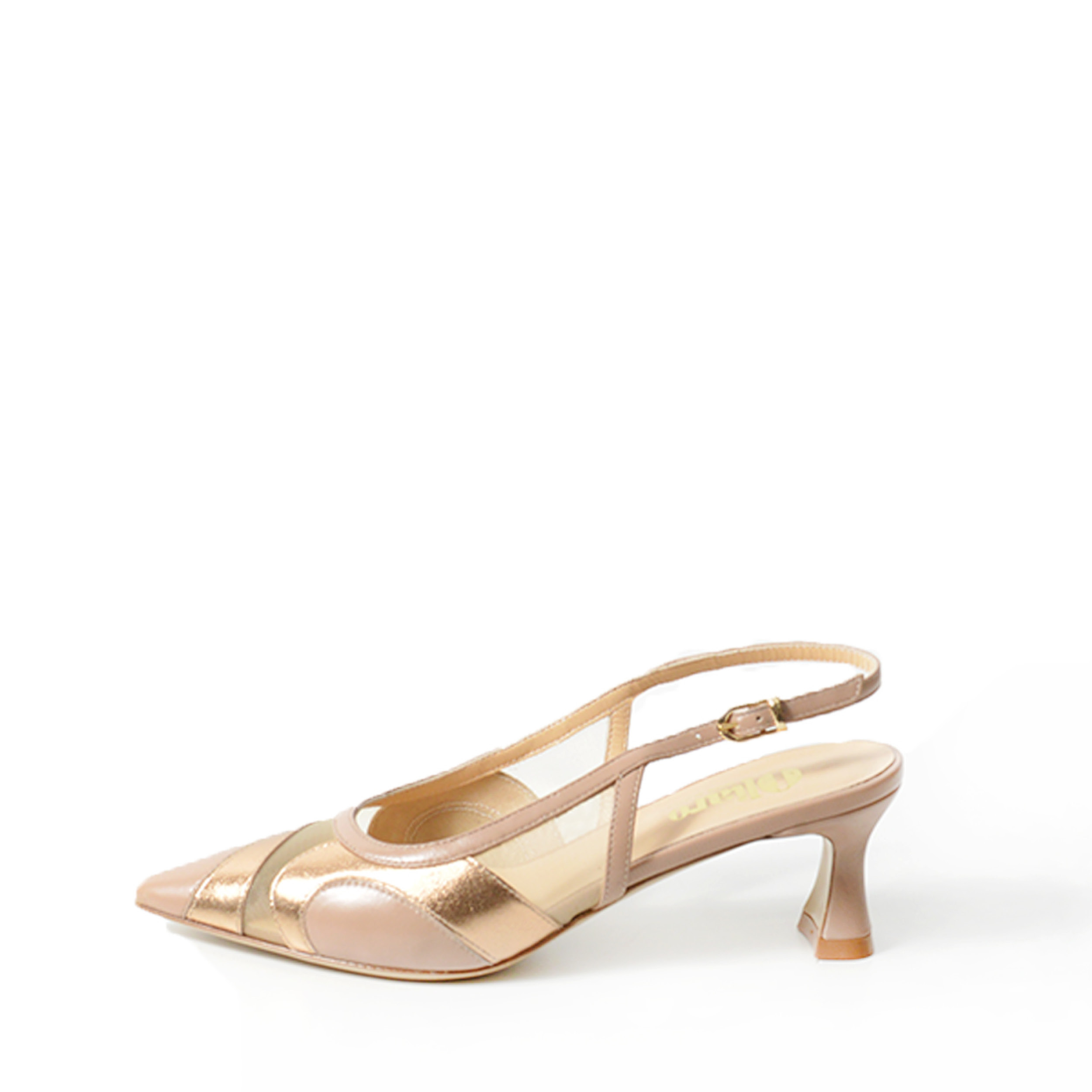 Slingback in vitello beige e bronzo con rete.