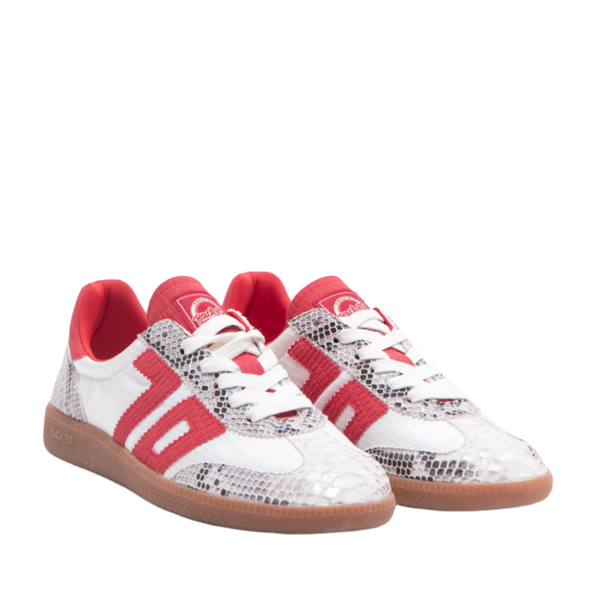 - Sneaker Back70 modello Ghost in tessuto bianco e pelle stampa pitone roccia.