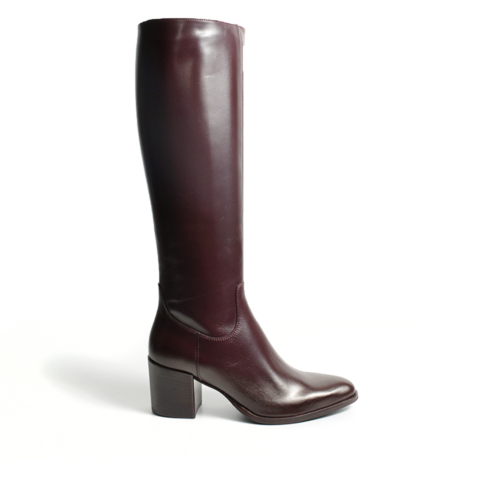 - Stivale in pelle bordeaux suola con gommina antiscivolo e tacco di cm 5.